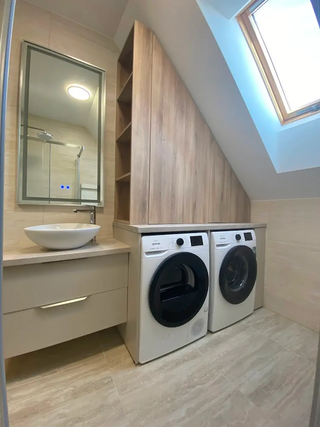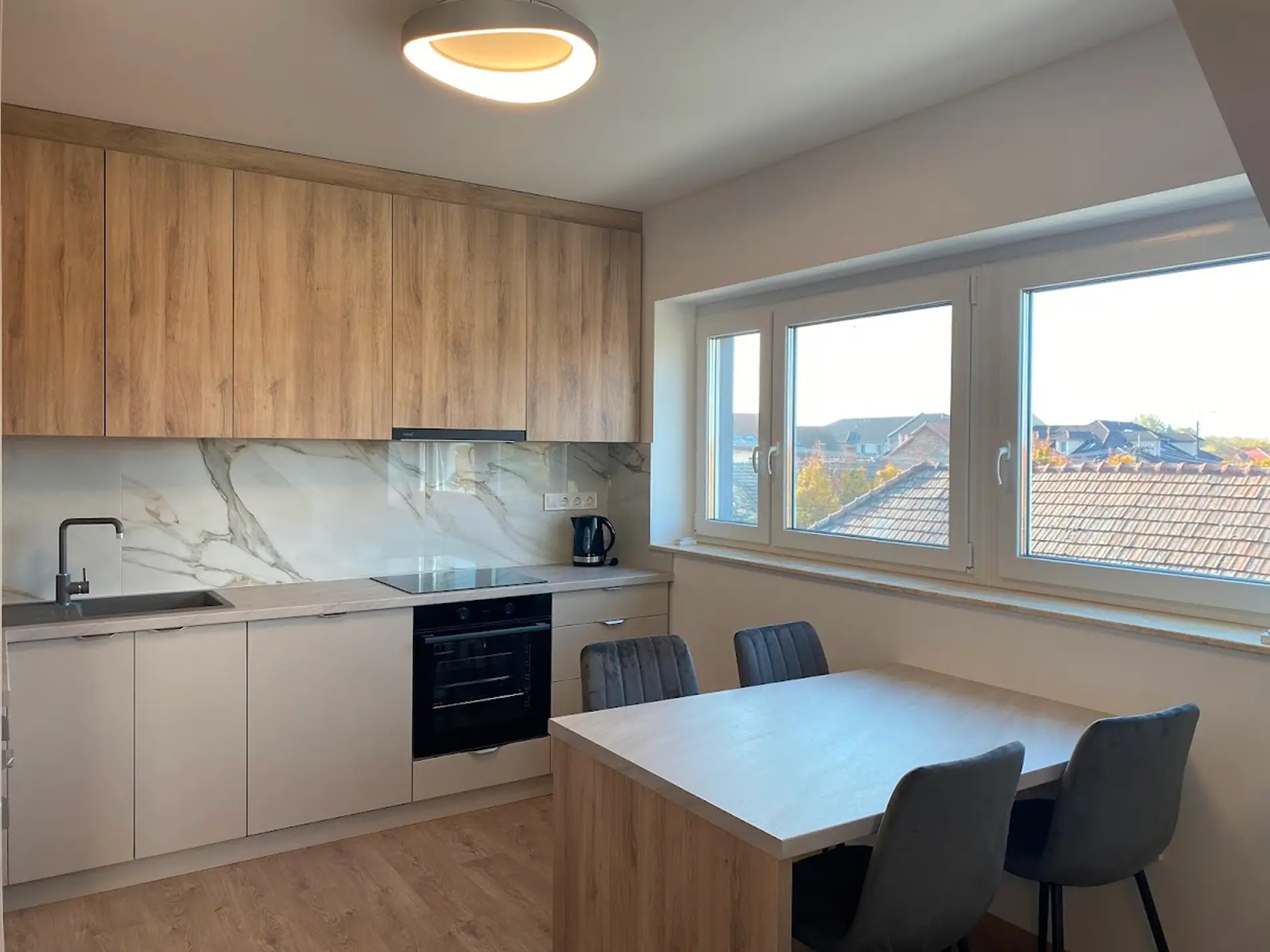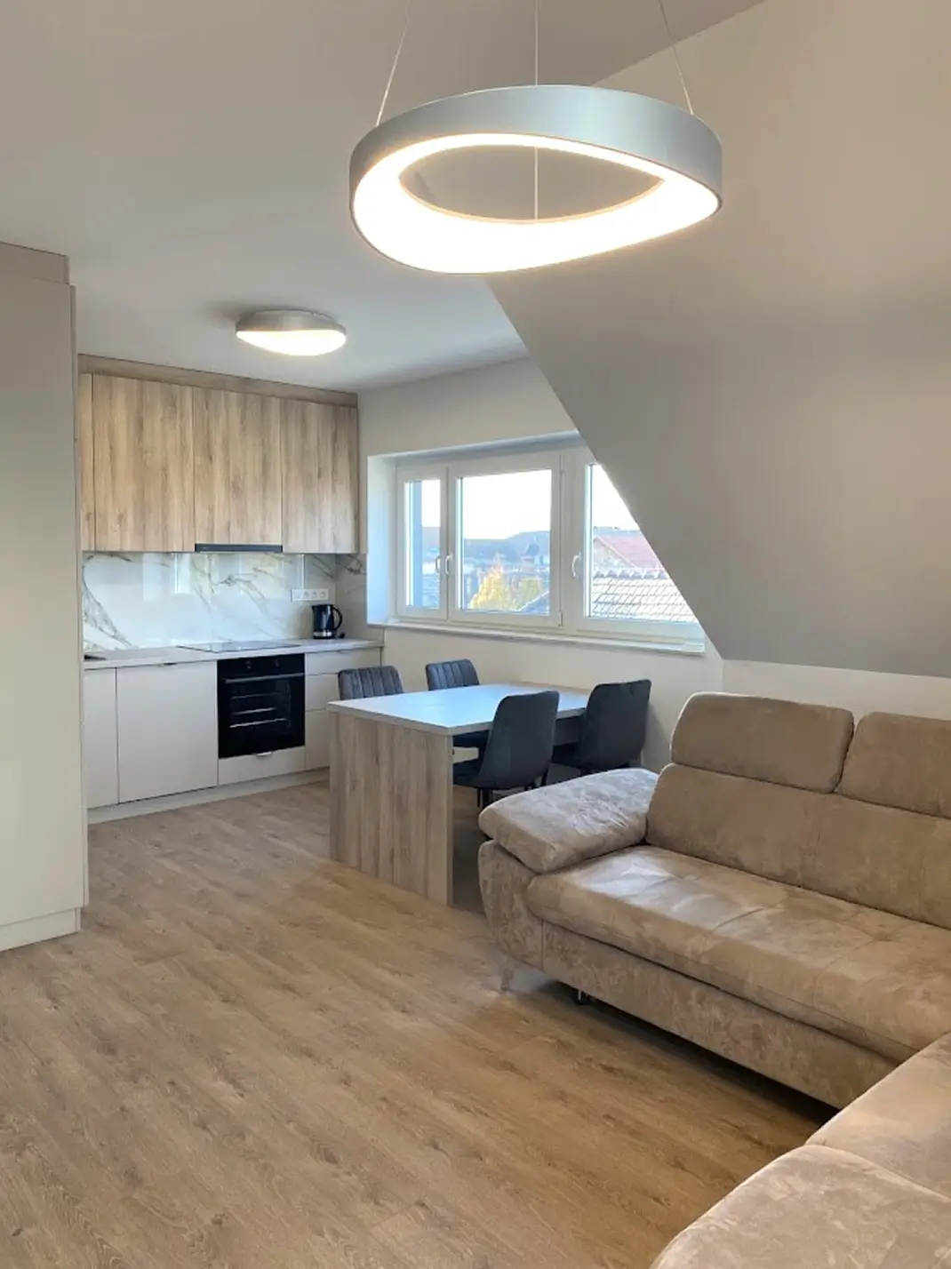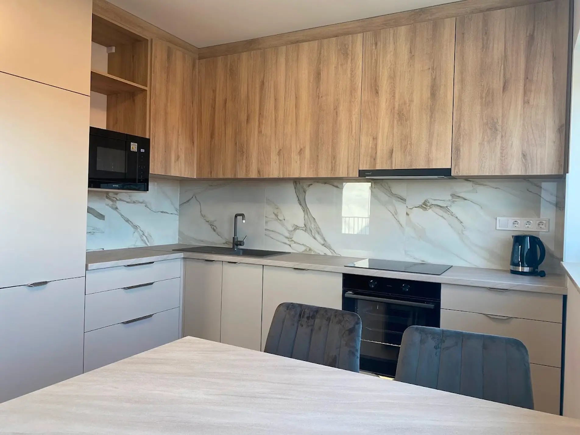 A 44 nm-es lakásnál a kasmír árnyalatok és a fa harmonikus párosítása adja a modern, prémium megjelenést. A tervezés során az esztétikum és a minőség mellett a költséghatékonyság is kiemelt szempont volt, hiszen a cél egy hosszú távon is értékálló befektetés volt.