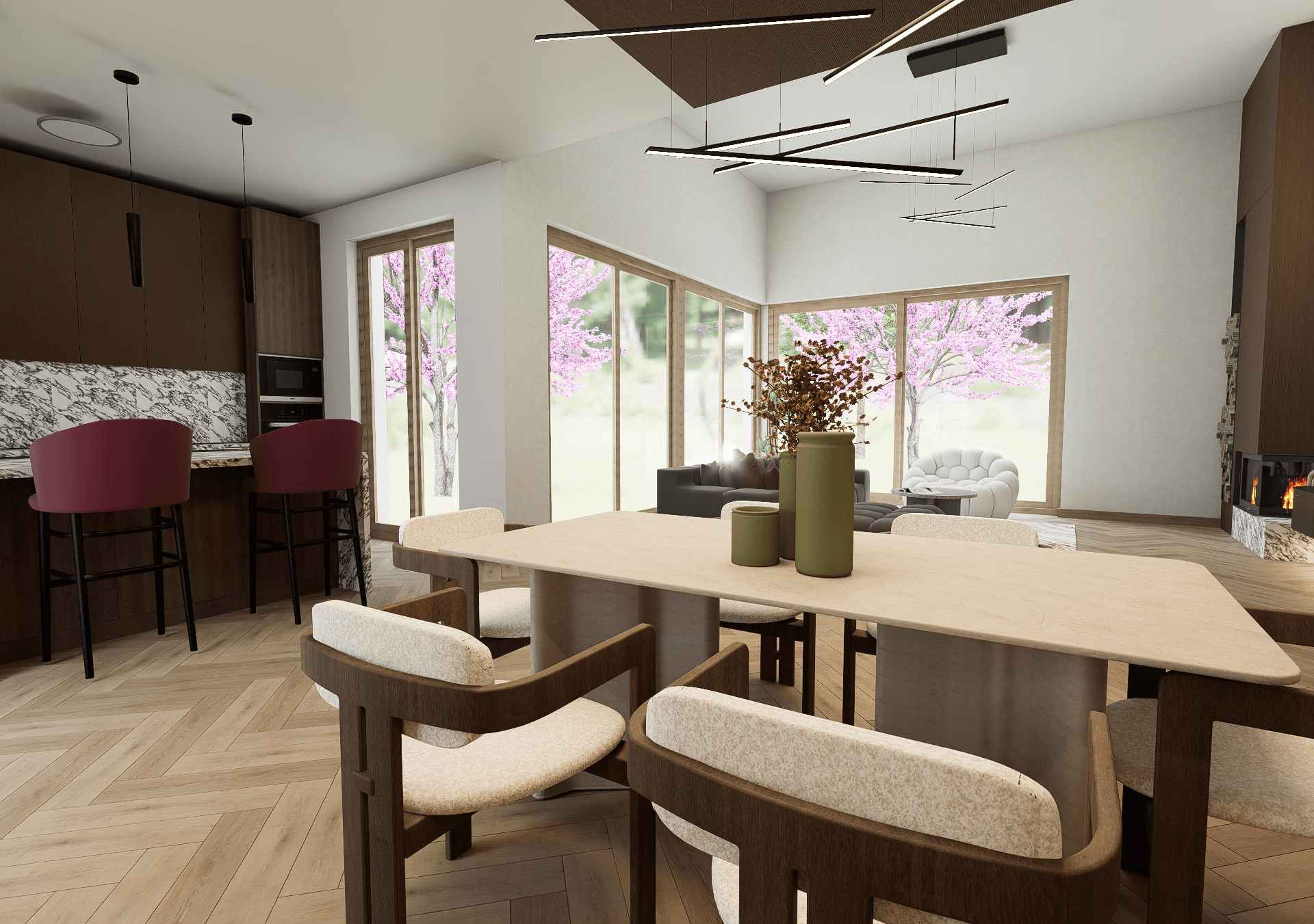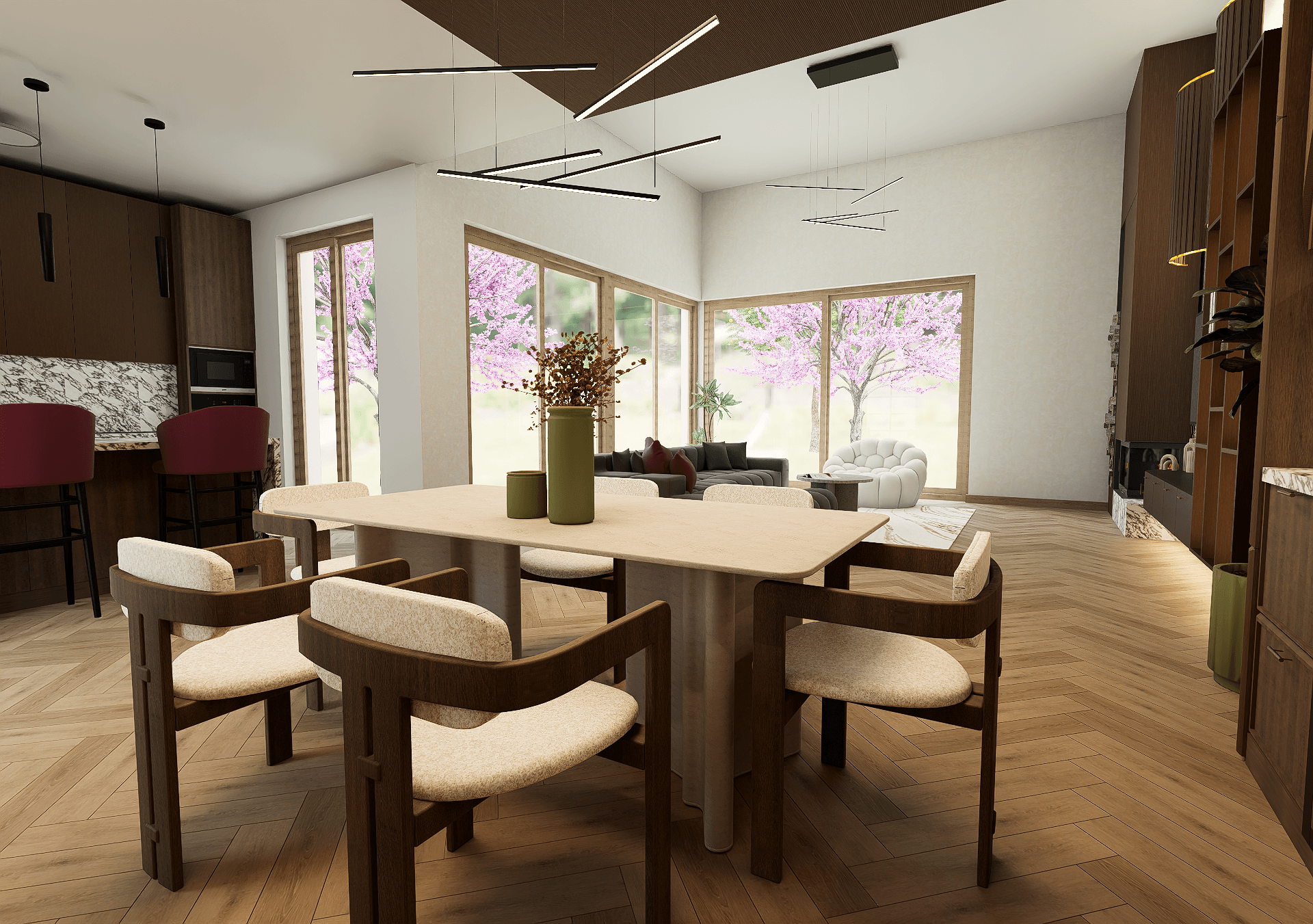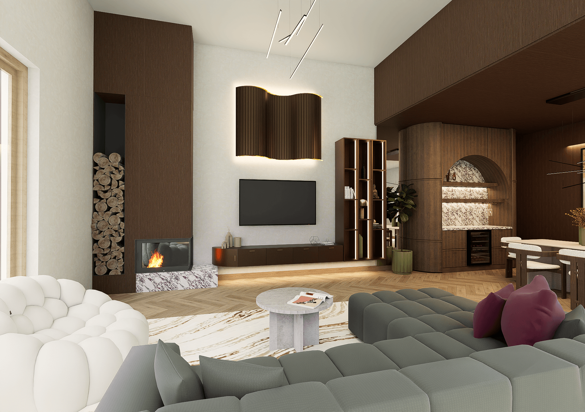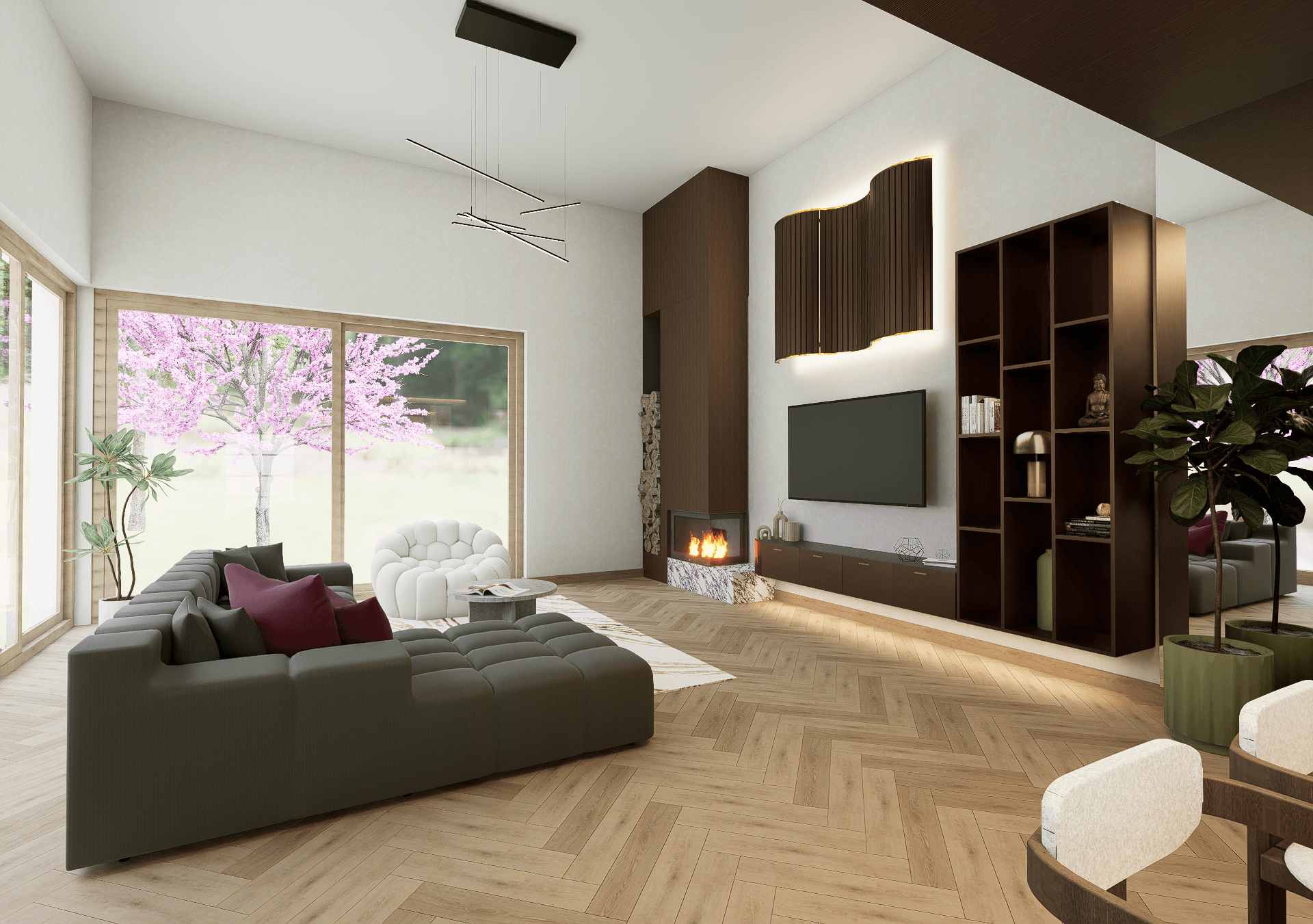 Ezzel a pályamunkával indultam az Év Szobája 2026 pályázaton, melynek mottója a „Színezd újra” volt. A koncepció tudatosan eltér a megszokott bézs enteriőröktől, és bátrabb színhasználattal teremt egyedi hangulatot